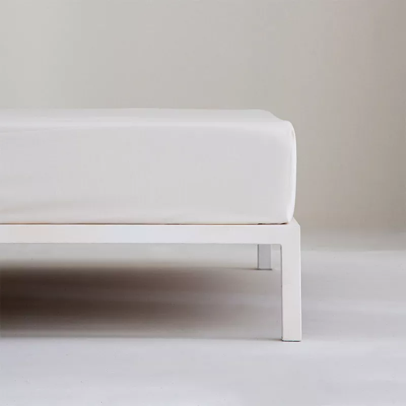 La bajera de la colección NOA está hecha en percal 100 % algodón de 200 hilos, un tejido que se siente fresco desde el primer contacto y que deja respirar la piel durante toda la noche.