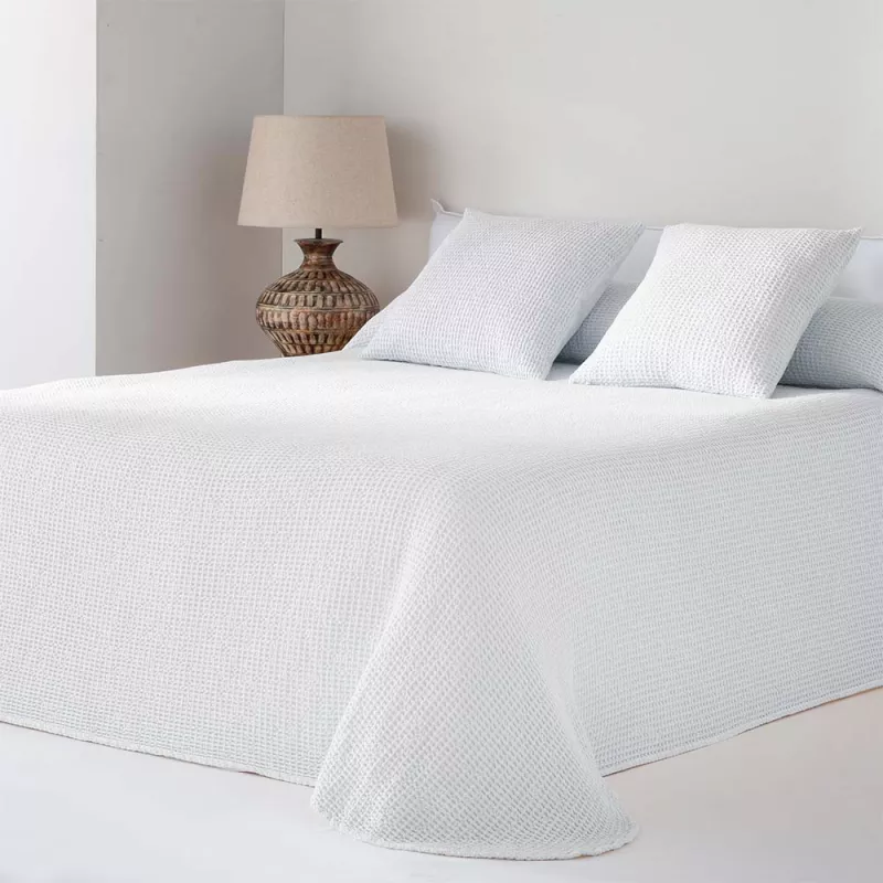 Colcha bouti AYALA BLANCO algodón jacquard waffle nido de abeja