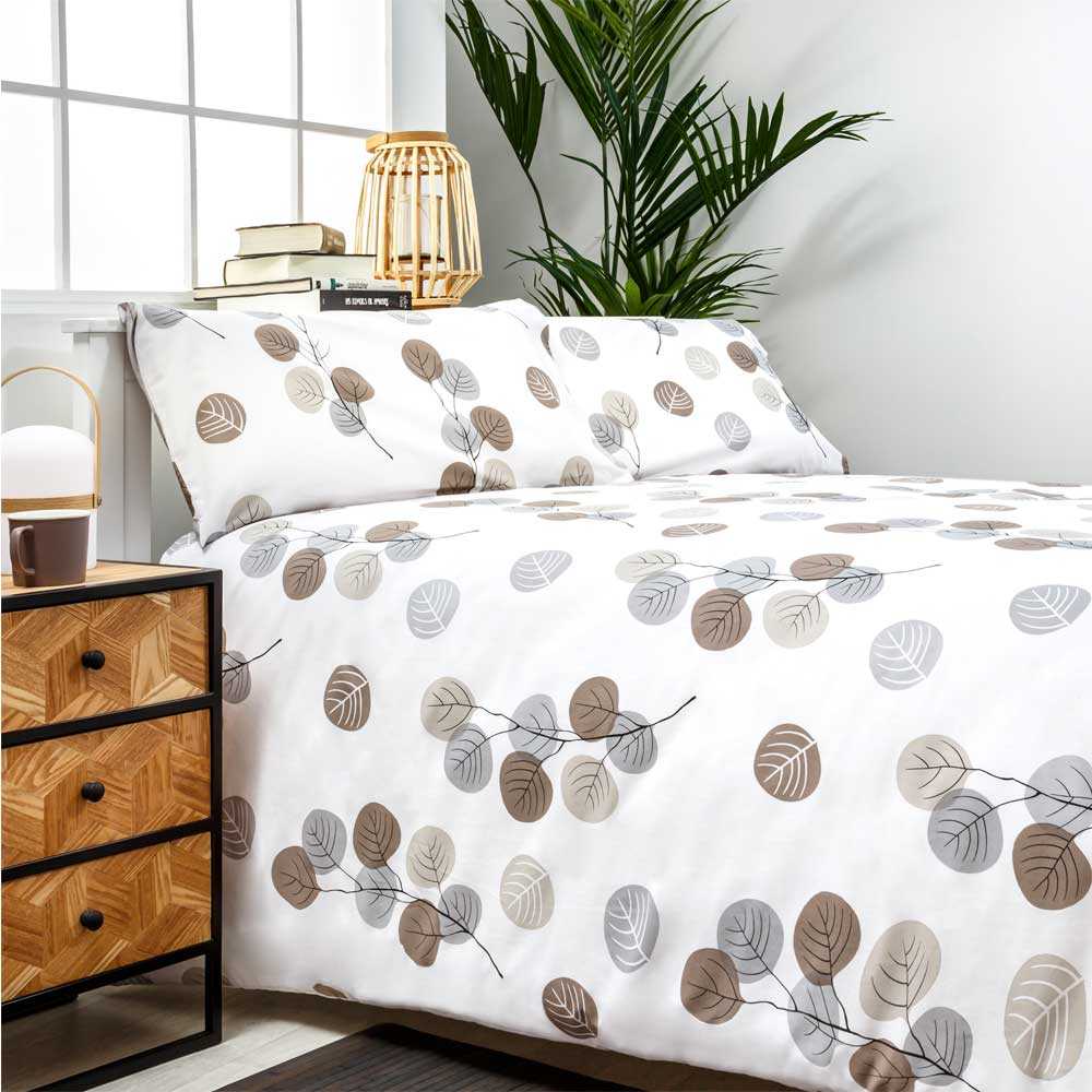 Esta funda incluye cierre con botones y está disponible en varias medidas, acompañada de una o dos fundas de almohada según la talla.