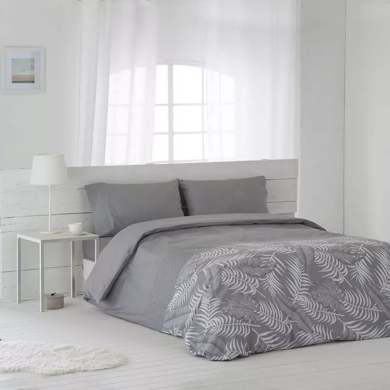 Funda nórdica tejido PERCAL ALGODÓN 100% DE 200 HILOS. Color BLANCO Y GRIS. Tejido agradable y fresco que permite una buena transpiración generando máxima sensación de confort al permitir la circulación de aire entre sus fibras. Cierre con botones.