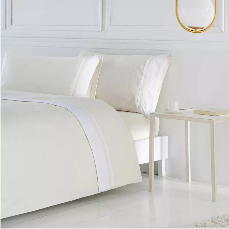 La alta densidad del tejido genera un tacto extra suave y un brillo discreto que recuerda a la ropa de cama de hoteles de lujo.