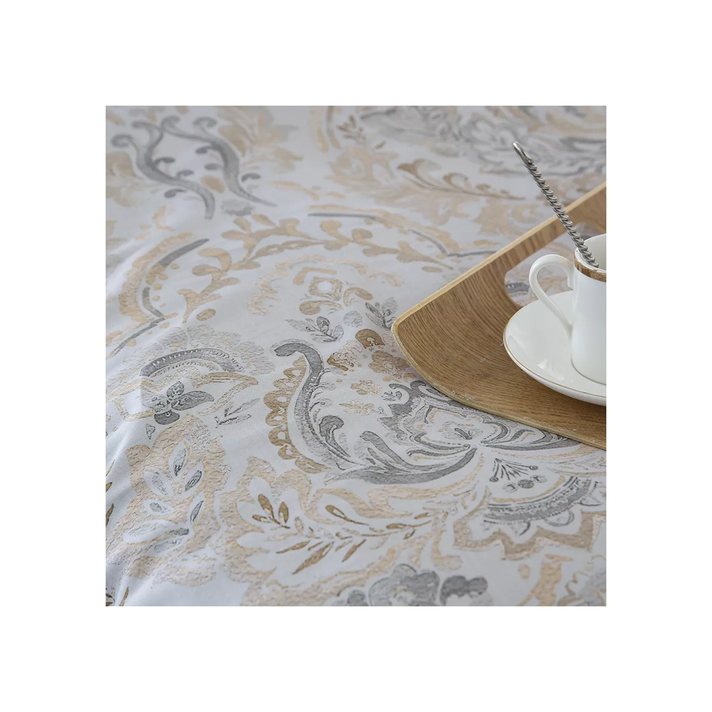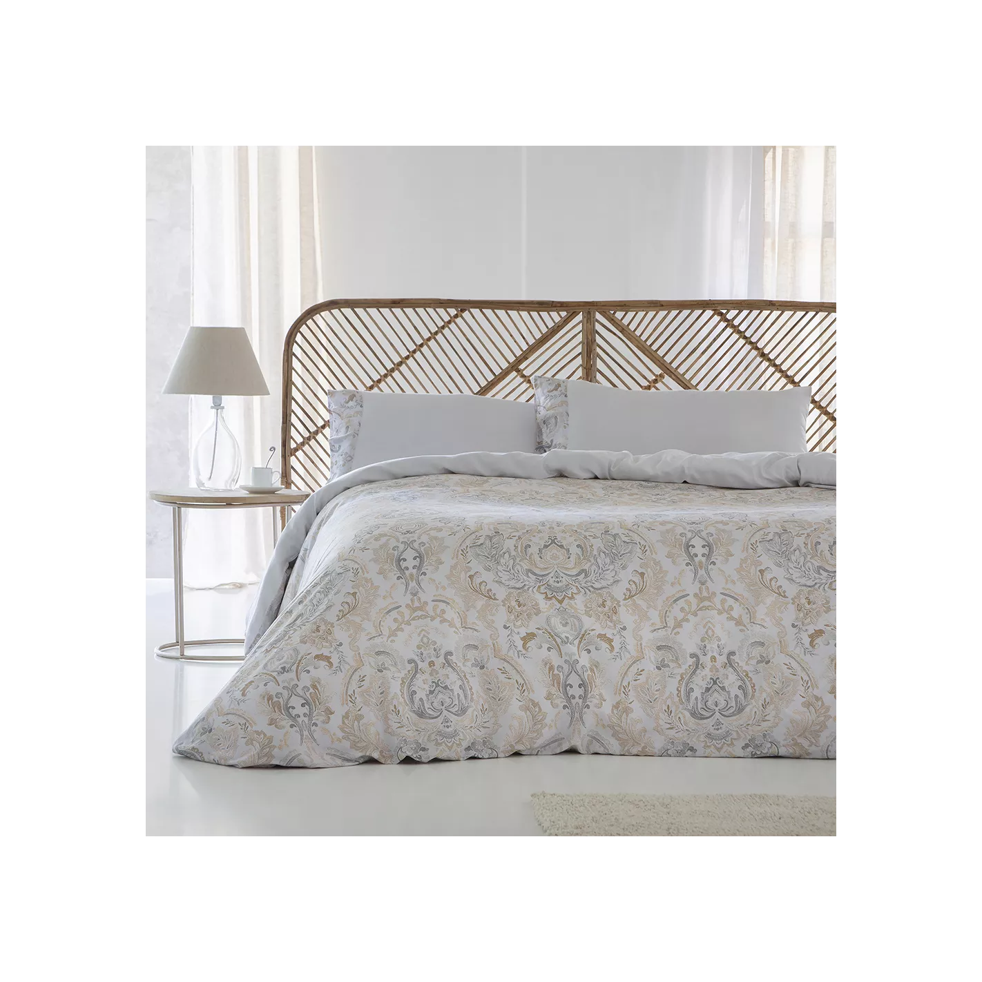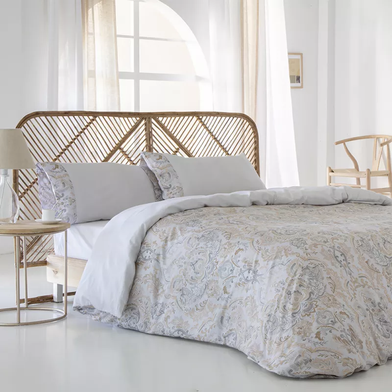 La funda nórdica Cares está confeccionada en 100 % satén de algodón con 200 hilos, ofreciendo un tacto sedoso y un brillo sutil. Su diseño multicolor combina tonos armoniosos que aportan dinamismo y personalidad al dormitorio sin resultar estridente.