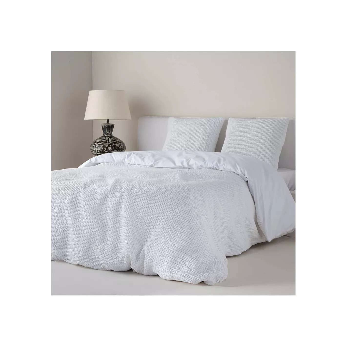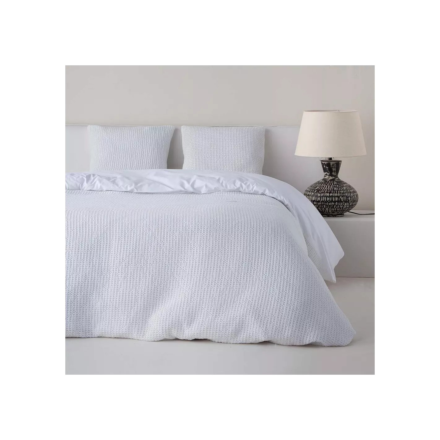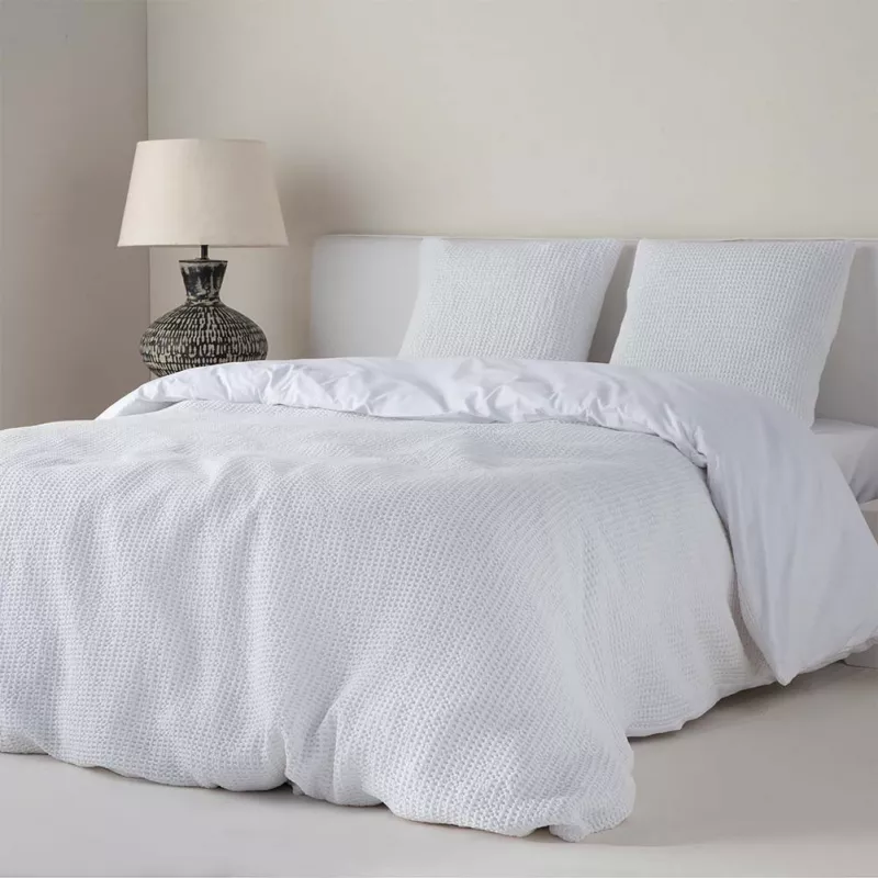 Funda Nórdica AYALA BLANCO de Algodón Jacquard Waffle (Nido de Abeja) – Textura esponjosa y confort natural