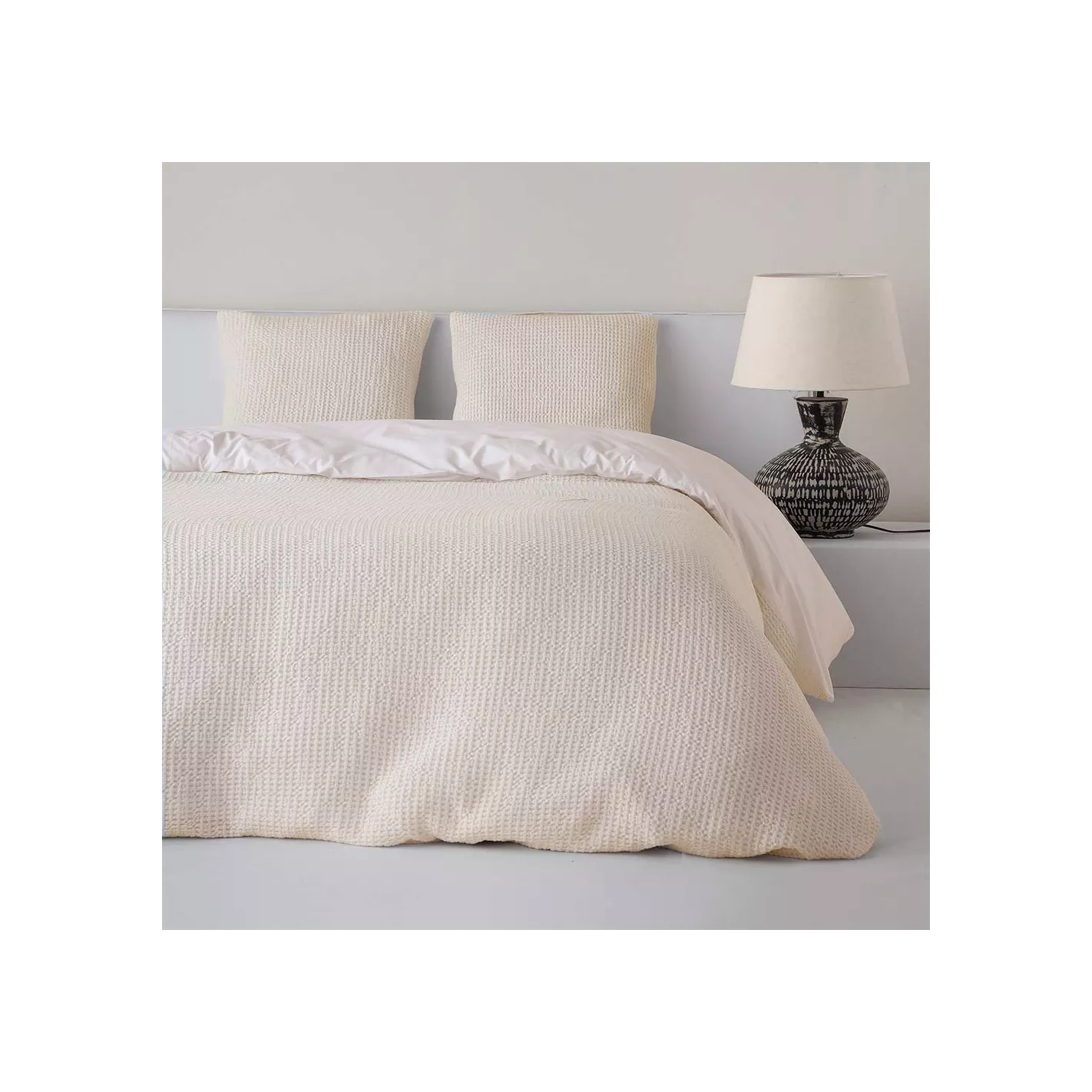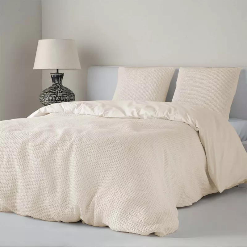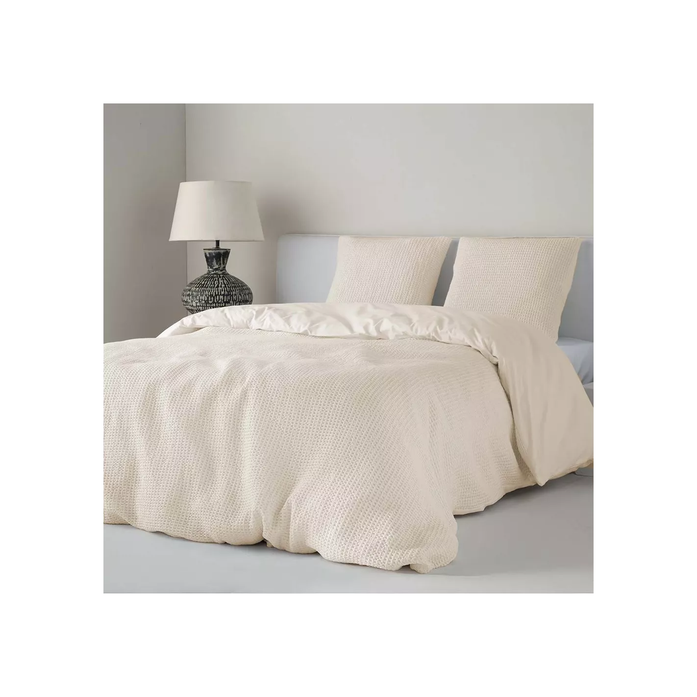 Funda Nórdica AYALA BEIGE de Algodón Jacquard Waffle (Nido de Abeja) – Textura esponjosa y confort natural