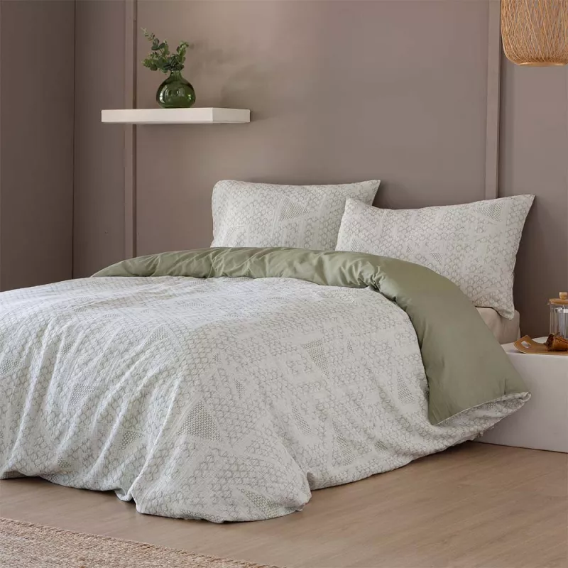 Funda Nórdica LAIDA VERDE de Algodón Jacquard Prelavada – Textura y suavidad natural