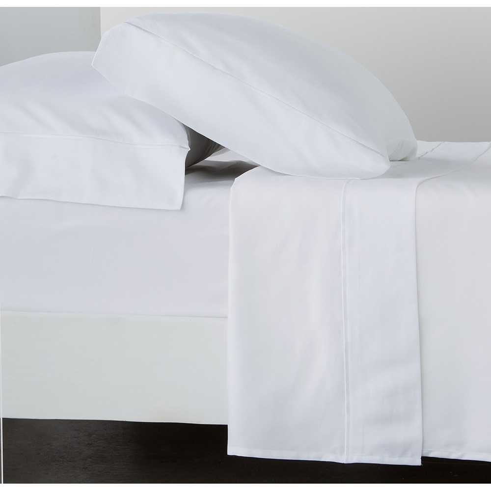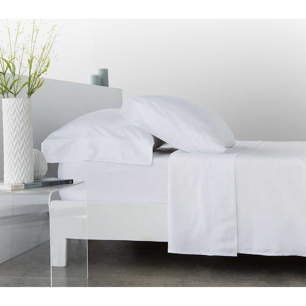 El juego de sábanas Leuna Satén Blanco está confeccionado con fibras largas y mercerizadas, lo que potencia su brillo natural y su resistencia con el paso del tiempo.