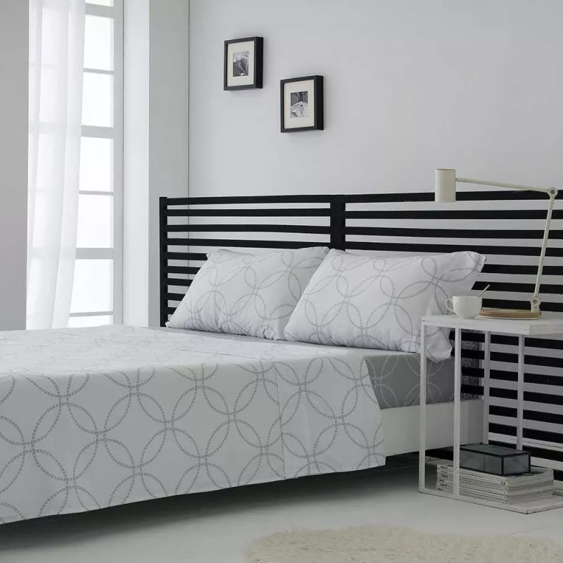 Incluye sábana encimera, bajera ajustable y fundas de almohada; todas las piezas cuentan con tratamiento anti‑peeling para evitar las bolitas.