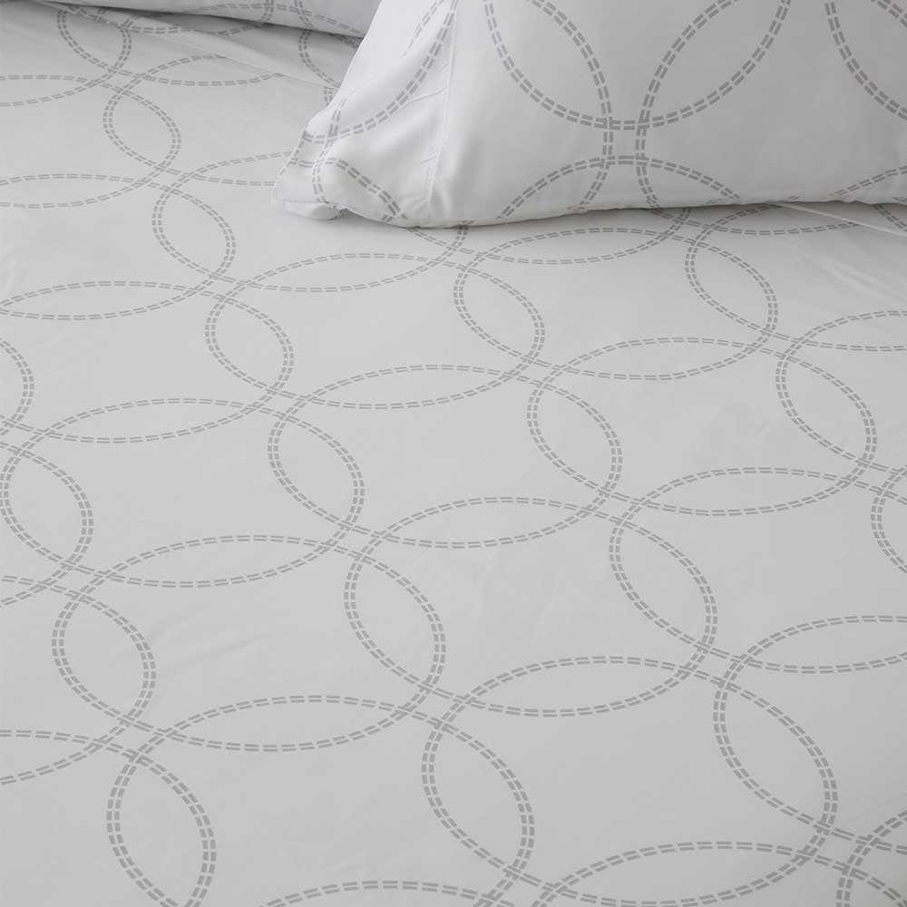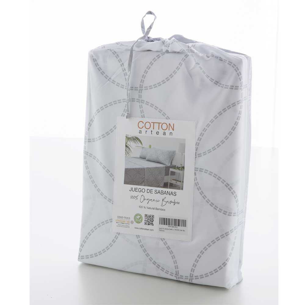 Su diseño geométrico en gris claro añade un toque contemporáneo al dormitorio mientras que el cultivo de bambú sin pesticidas asegura un descanso más saludable.