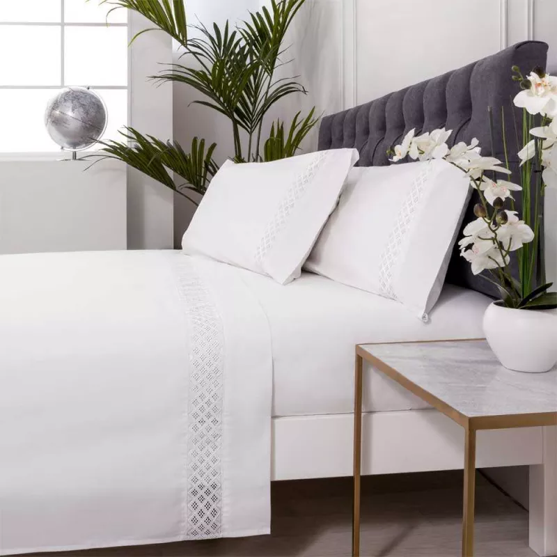 Juego de sábanas SARRIA percal 200 hilos con vainica – Elegancia blanca de hotel