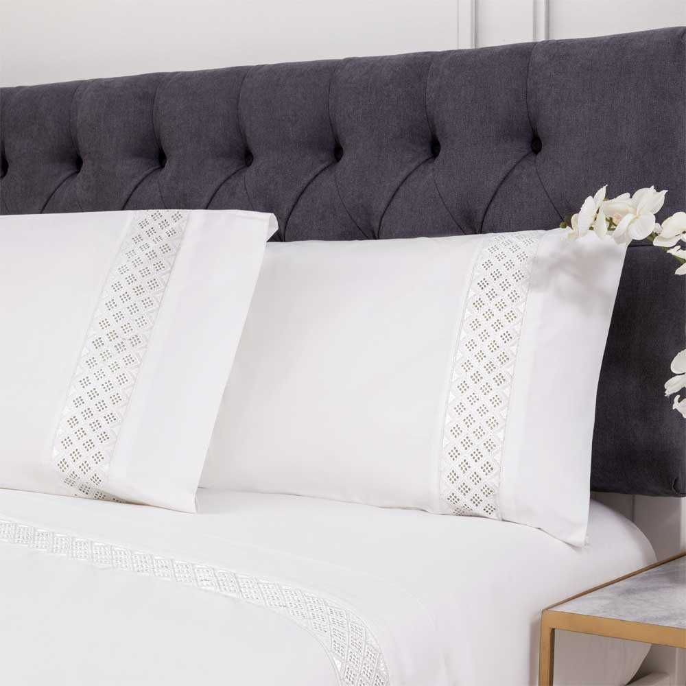 El detalle de vainica bordada aporta un toque clásico y elegante que convierte cualquier dormitorio en un espacio sofisticado.